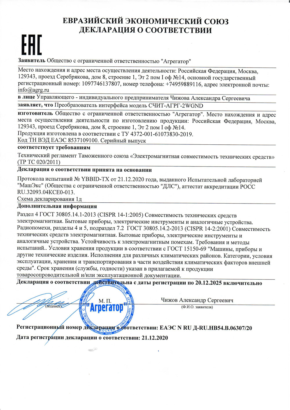 Подключение с использованием СЧИТ-АГРГ-2WGND