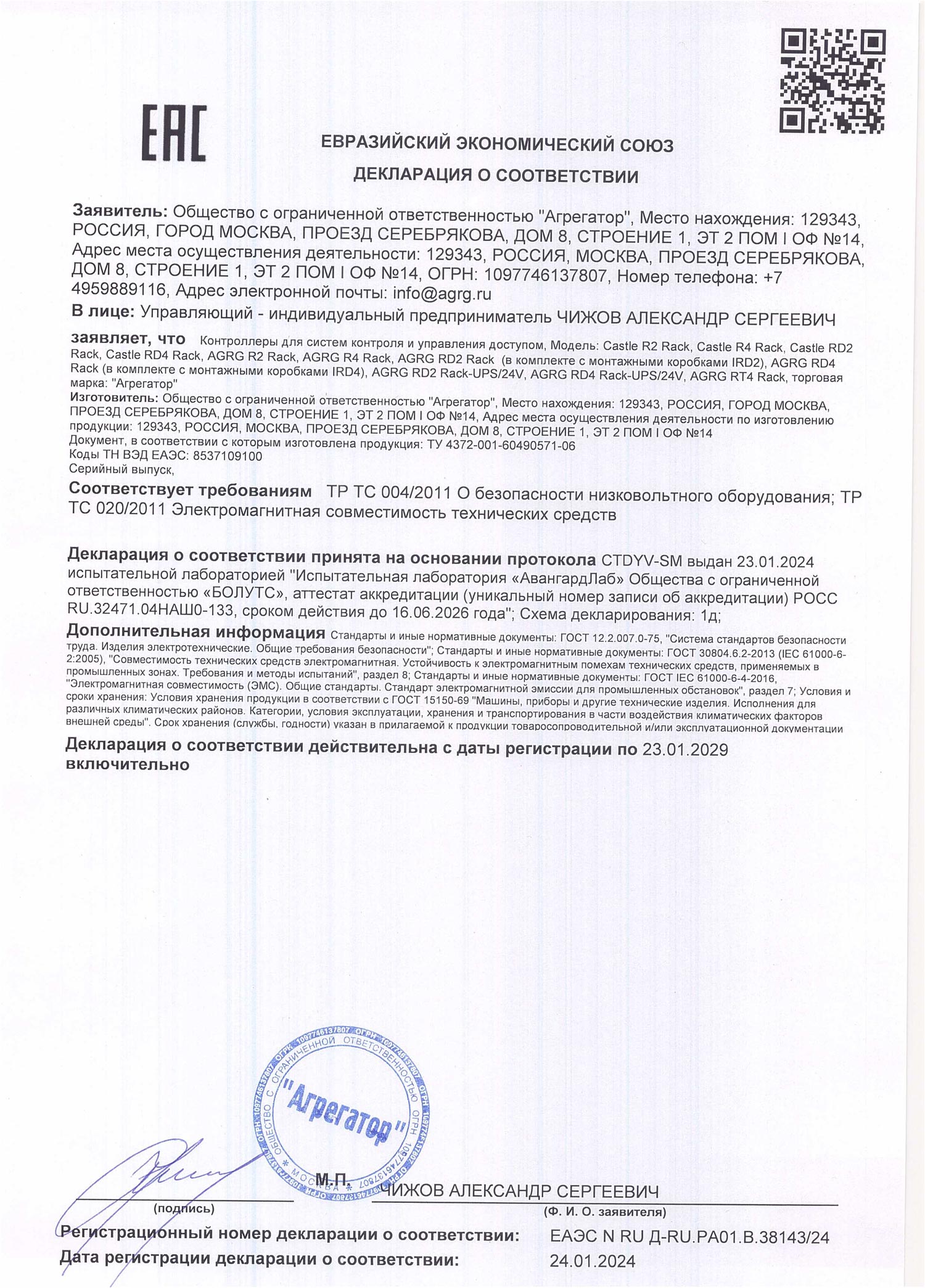 Контроллер AGRG R4 Rack представляет собой решение, созданное с учетом потребностей как больших современных дата-центров, так и небольших локальных хранилищ информации. Занимающий всего 1U пространства в стандартной 19-дюймовой стойке, AGRG R4 Rack оснащен разъемами для подключения считывателей, исполнительных устройств и необходимых датчиков, в т.ч. мультиформатных ручек AGRG SH-I — одного из ключевых продуктов комплекса AGRG ЦОД.